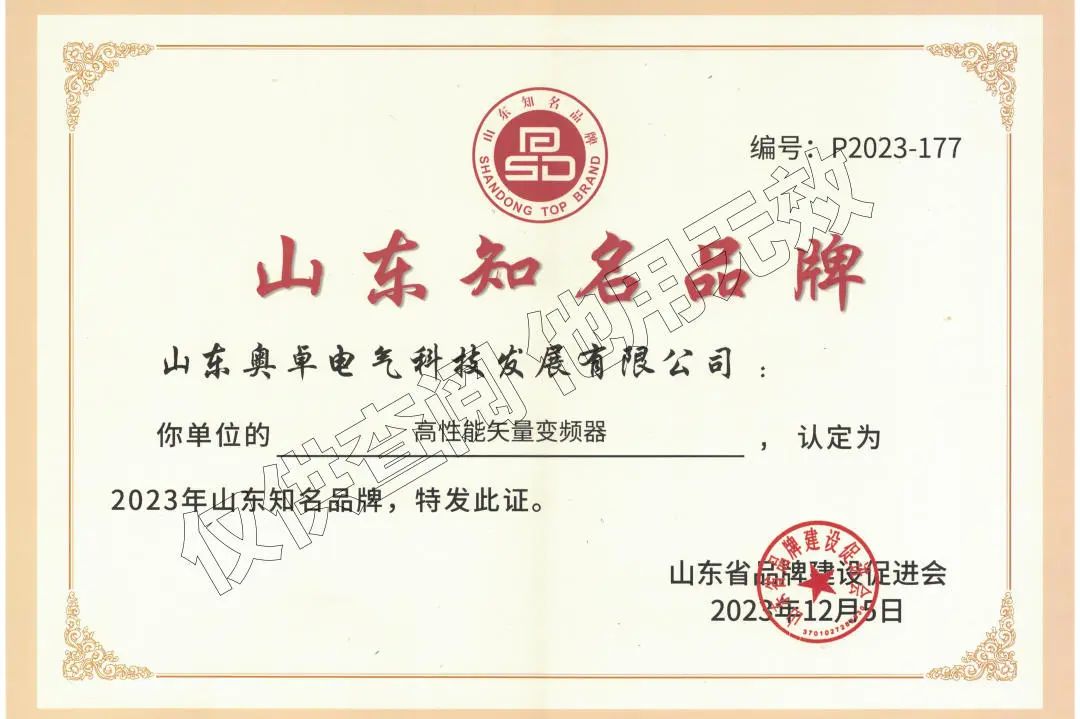 作為一家致力于工業(yè)控制與節能領(lǐng)域的企業(yè),奧卓科技始終堅持技術(shù)創(chuàng )新,注重產(chǎn)品品質(zhì),自主研發(fā)生產(chǎn)的奧卓爾品牌“高性能矢量變頻器”具有多項專(zhuān)利技術(shù),憑借出色的性能和穩定性,在市場(chǎng)上贏(yíng)得了廣泛的贊譽(yù)和用戶(hù)的信任。此次被認定為“山東知名品牌(產(chǎn)品)”,是對奧卓科技產(chǎn)品質(zhì)量、優(yōu)質(zhì)服務(wù)以及綜合實(shí)力的肯定與認可,同時(shí)也是對公司未來(lái)發(fā)展的鞭策與鼓勵。