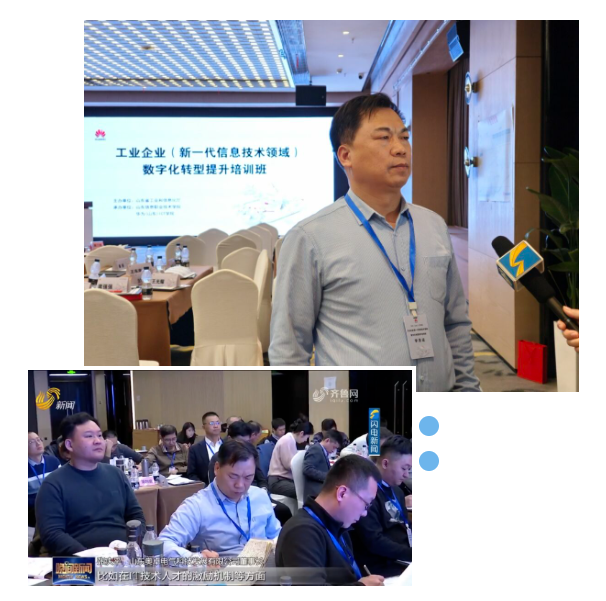 在本次培訓活動(dòng)中,奧卓科技董事長(cháng)張慶平接受了山東電視臺新聞頻道的采訪(fǎng),分享了一些觀(guān)點(diǎn)和經(jīng)驗,表示現階段信息數字經(jīng)濟正在高速發(fā)展,而中小企業(yè)作為社會(huì )經(jīng)濟的重要支撐力量,實(shí)施數字化轉型成為發(fā)展的必然。今后,公司將加快實(shí)現技術(shù)與市場(chǎng)資源整合,補強人才鏈、技術(shù)鏈、市場(chǎng)鏈,比如在IT技術(shù)人才的激勵機制等方面要增加項目獎勵基金,吸引高端人才集聚,全力推動(dòng)更多企業(yè)加快數字化轉型步伐,促進(jìn)山東工業(yè)經(jīng)濟的健康發(fā)展。