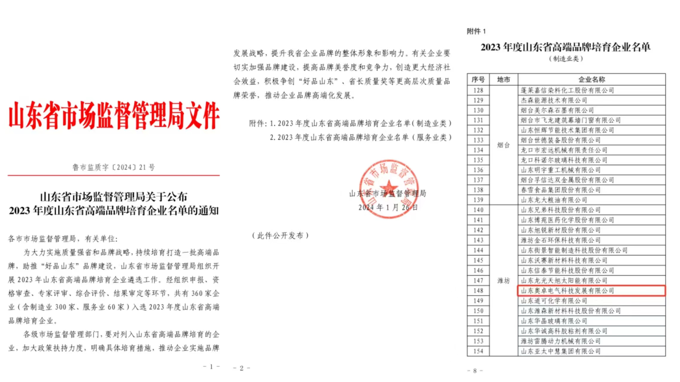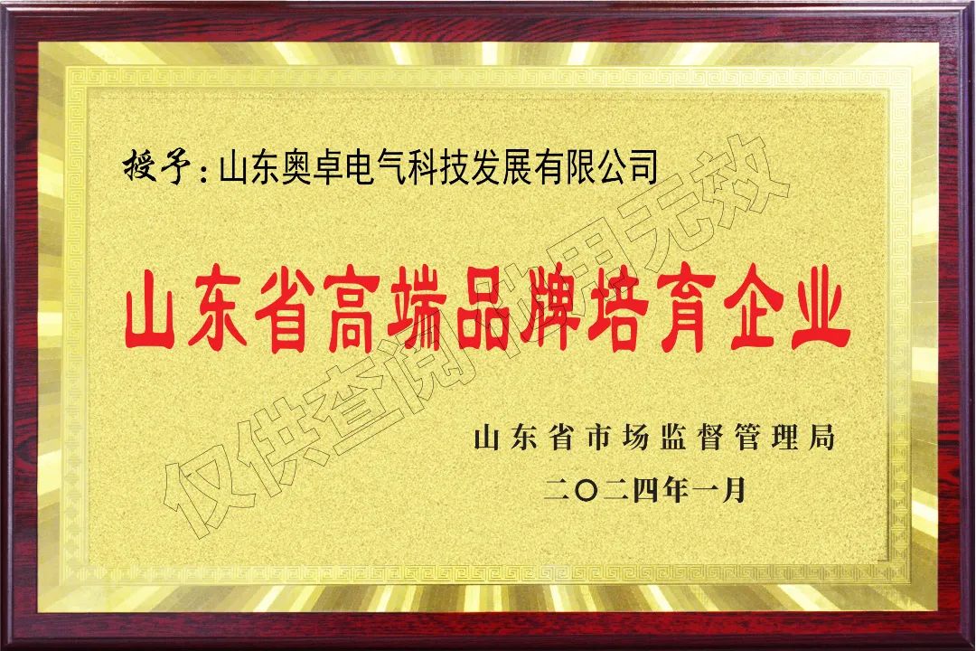 2024年1月26日,山東省市場(chǎng)監督管理局公布了2023年度山東省高端品牌培育企業(yè)名單,山東奧卓電氣科技發(fā)展有限公司榜上有名,成功入選2023年度山東省高端品牌培育企業(yè)。這是奧卓科技旗下品牌“奧卓爾”榮獲山東優(yōu)質(zhì)品牌(產(chǎn)品)和山東知名品牌(產(chǎn)品)后,在品牌建設方面獲得的又一殊榮,充分體現了奧卓爾品牌在行業(yè)內的影響力。