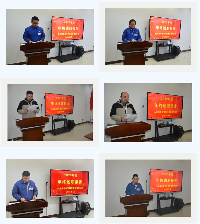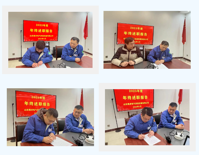 近日,山東奧卓電氣科技發(fā)展有限公司順利舉行了2023年度管理者年終述職報告會(huì )暨2024年度管理者崗位職責實(shí)施責任書(shū)簽訂儀式,為新的一年揭開(kāi)了帷幕。奧卓科技董事長(cháng)張慶平、常務(wù)副總張曉、副總經(jīng)理婁增磊、技術(shù)總監王學(xué)偉出席會(huì )議,公司各部門(mén)經(jīng)理參加會(huì )議并作述職報告。