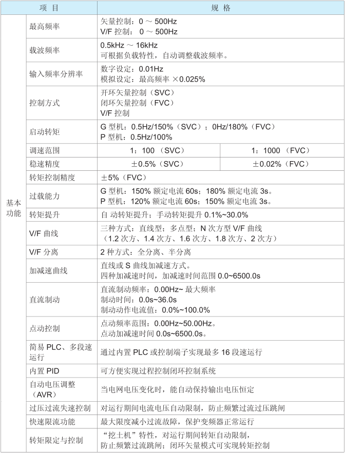 11.瞬停再起動(dòng)速度追蹤功能、自動(dòng)穩壓功能、直流剎車(chē)、PLC程序控制等功能;